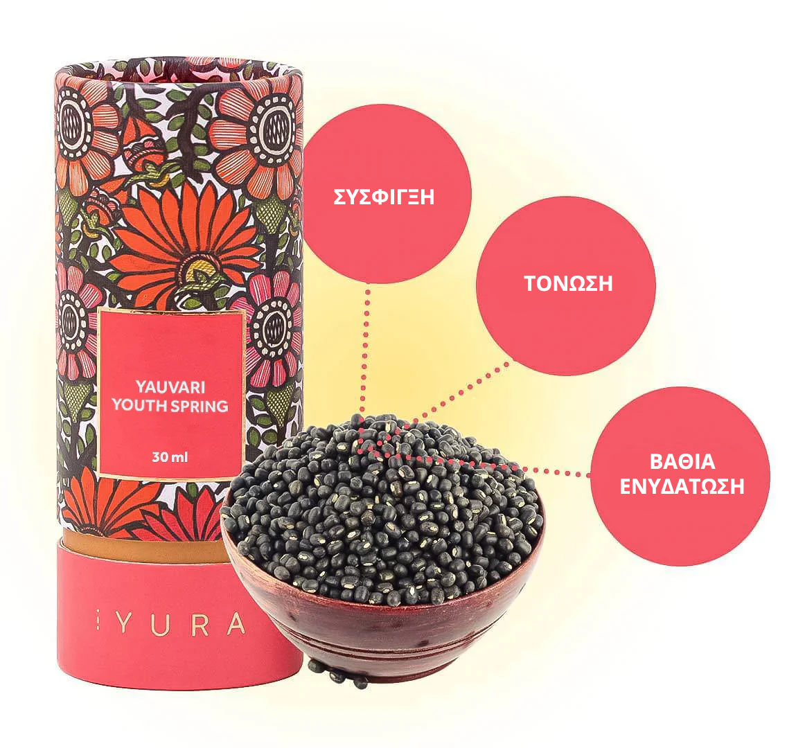 Το Yauvari μεταφράζει τη δύναμη της φύσης σε πραγματικά, φυσικά αποτελέσματα για να ενισχύσει αυτό που ήδη υπάρχει μέσα σας - χρησιμοποιεί τις μοναδικές επιδράσεις του Black Gram για να επιστρέψει στο δέρμα σας ό,τι έχασε από το χρόνο, το περιβάλλον, το στρες, τα χημικά και την ηλικία.